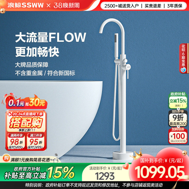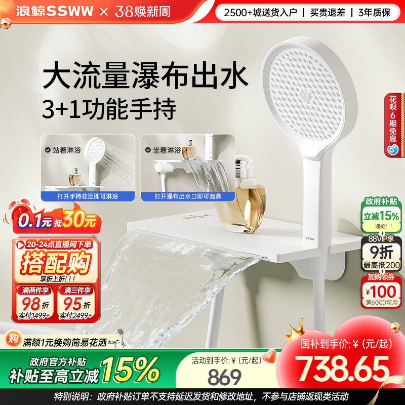 霖代卫浴浴缸龙头冷热明装入墙式淋浴花洒套装白色瀑布水龙头新品