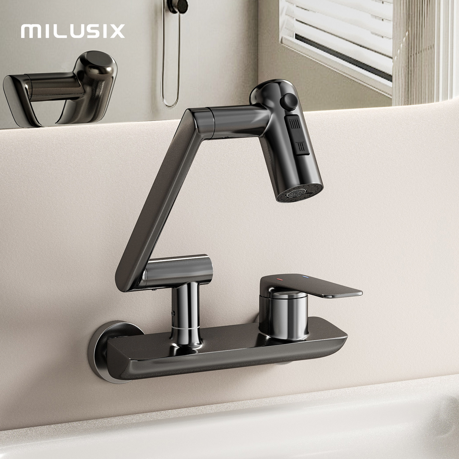 MILUSIX全铜卫生间多功能机械臂浴缸龙头冷热入墙洗漱台盆水龙头