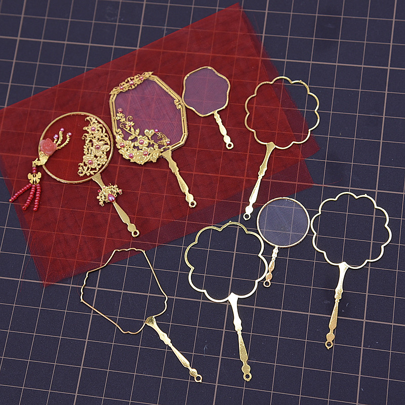 6cm古风团扇胸针 六分金属芭比娃娃用DIY微缩金属扇子配件 空白扇