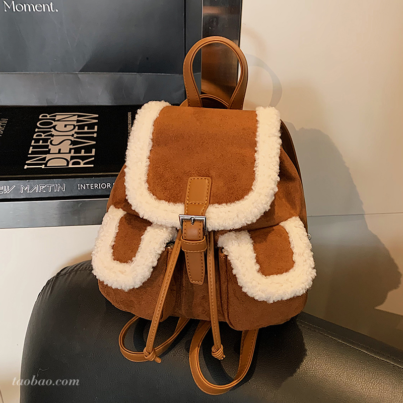 秋冬复古麂皮绒女式双肩包2025新款百搭后背包精致迷你旅行小书包
