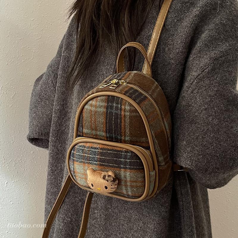 超火小众毛呢包包女2025新款百搭双肩后背包秋冬季精致迷你小书包