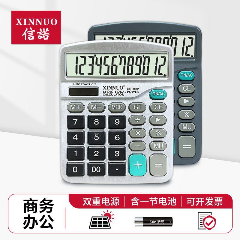 信诺DN-3519大屏幕大按键太阳能12位财务会计办公用计算器包邮