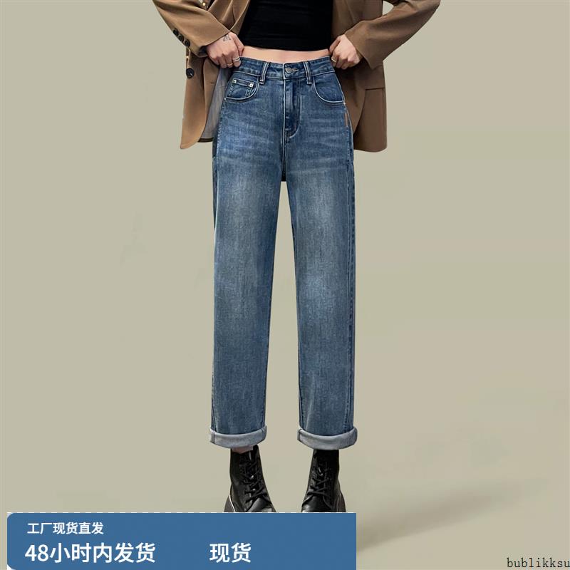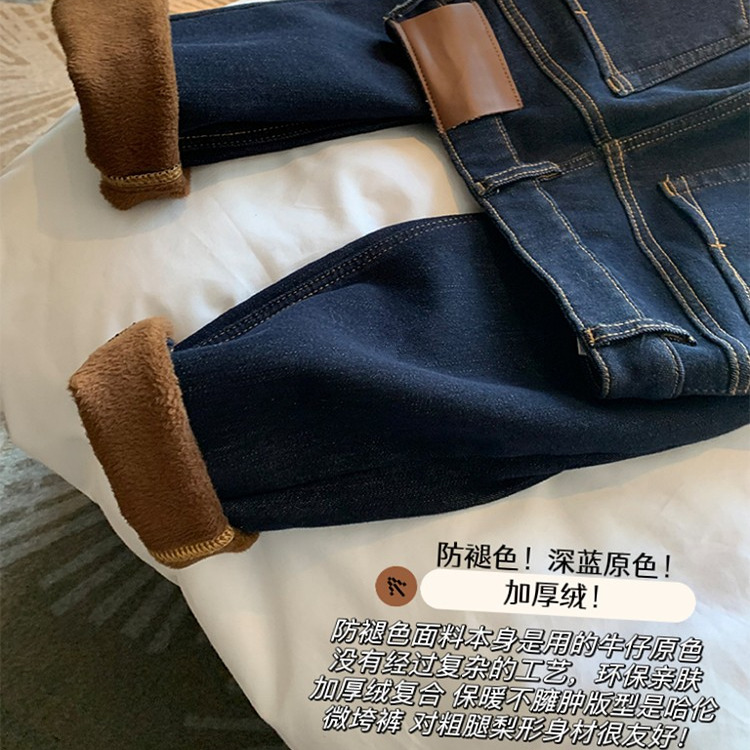 断码断码深蓝防褪色!加厚绒!宽松微垮高腰显瘦哈伦萝卜牛仔裤女
