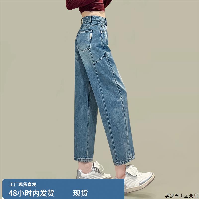 高腰九分宽松蓝色哈伦老爹萝卜牛仔裤女2025年春秋垂感香蕉弯刀裤