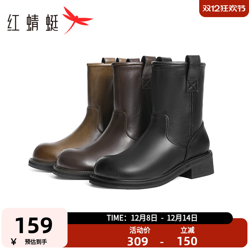 H55女鞋惠灵顿街区2025巴家新款毒液靴英伦风厚底擦色中筒靴女靴