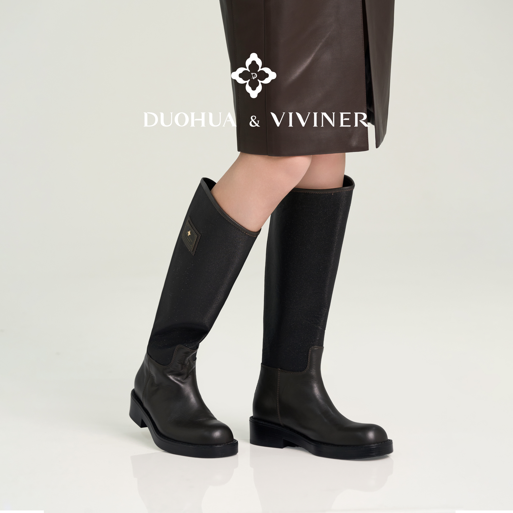 DV秋冬新款植鞣胎牛皮骑士靴长筒靴靴子中筒靴女靴DUOHUA&VIVINER