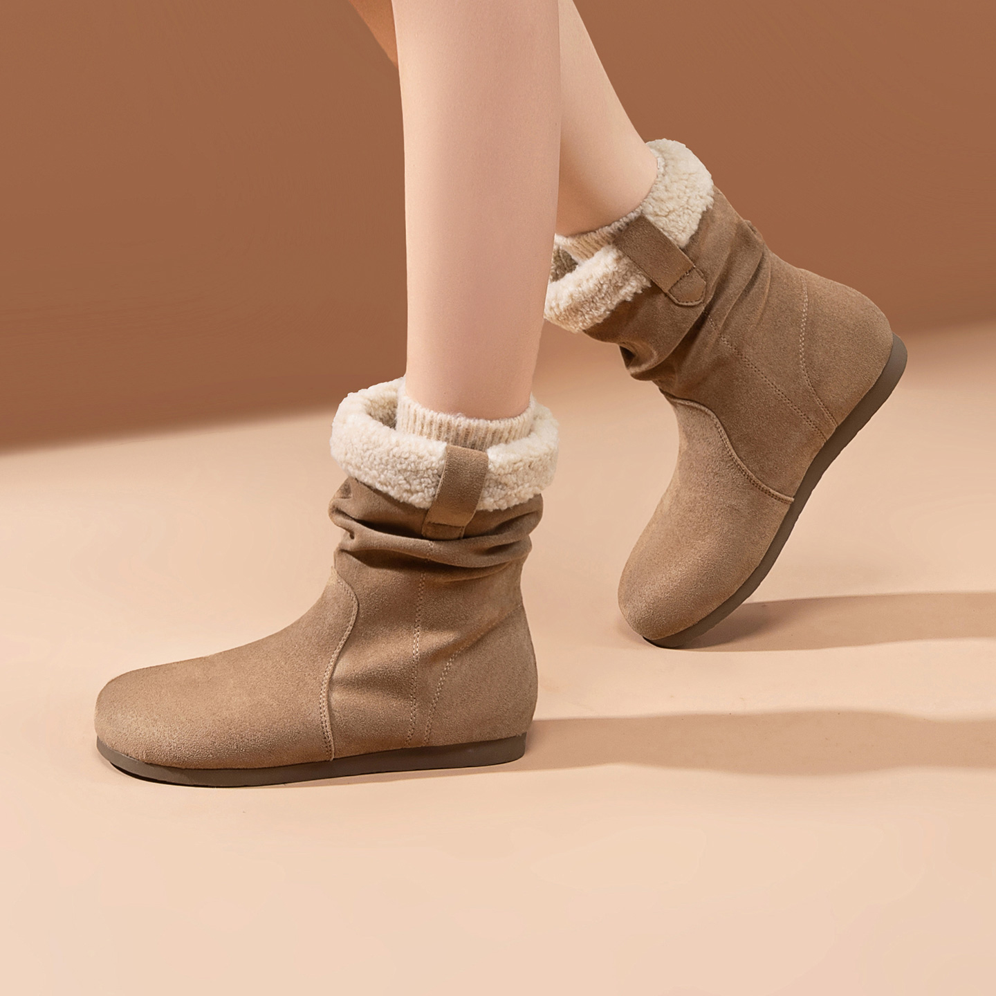大东女鞋堆堆靴2025冬季新款加绒中筒靴女靴美拉德时装靴复古圆头