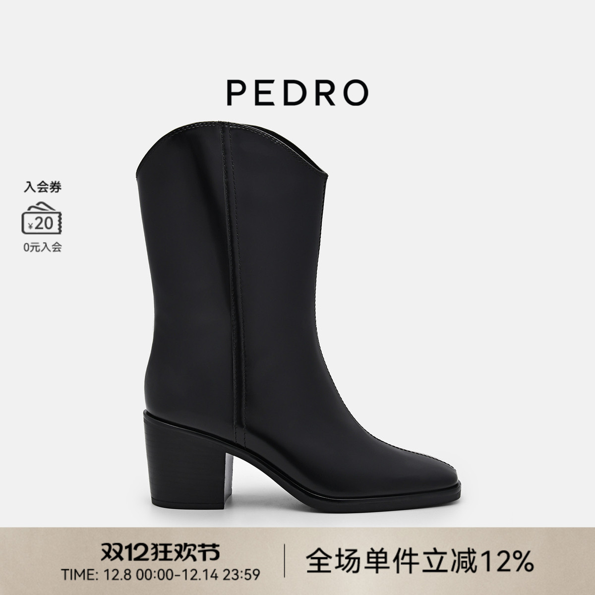 PEDRO方头牛皮中筒靴女靴乌托邦系列骑士靴PW1-16760016