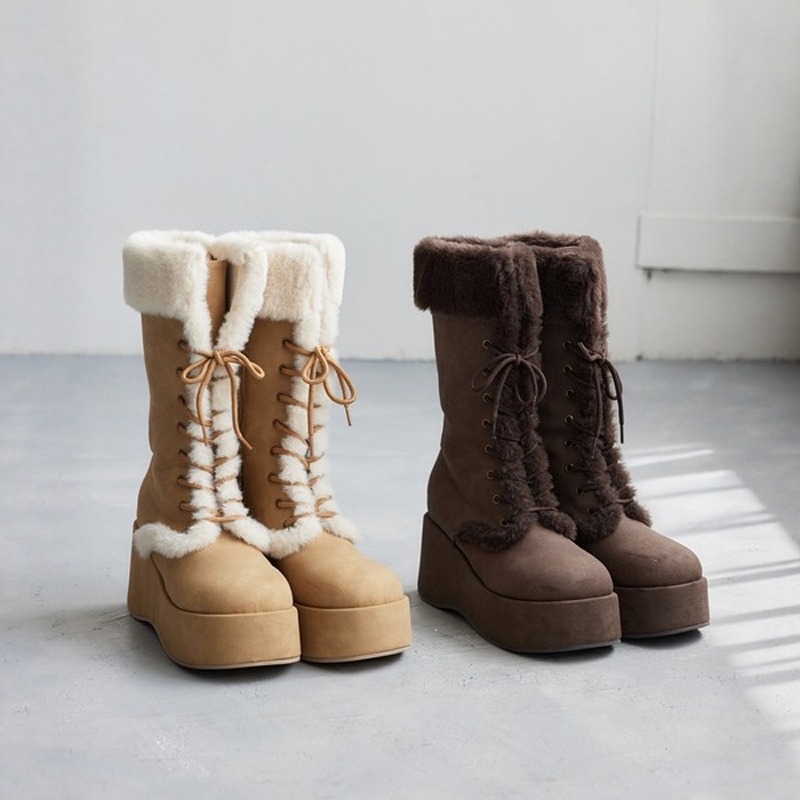 NC浪漫少女感!可爱毛毛保暖厚底增高日系中筒靴女靴棉靴女雪地靴