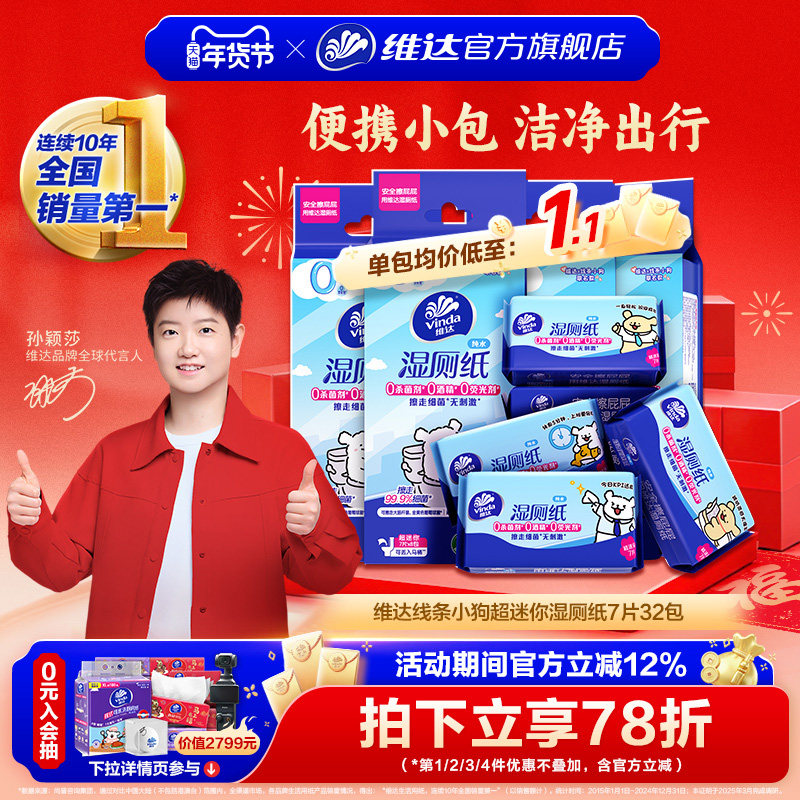 [下拉领补贴]维达多巴胺组合湿厕纸8包便携小包家用大包旗舰店ms