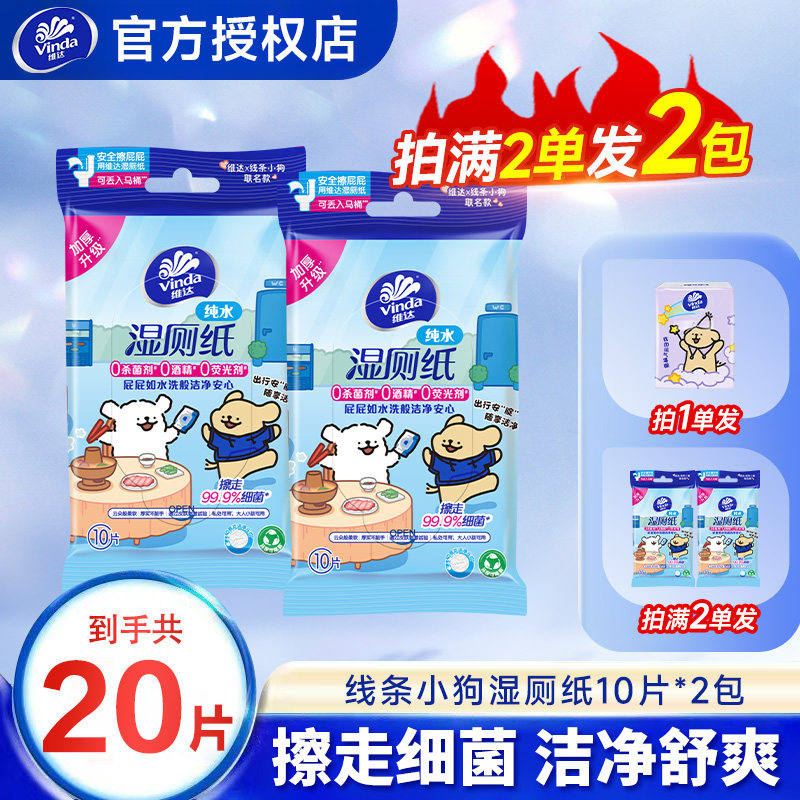 维达湿厕纸线条小狗联名纯水10片便捷装外出旅行装2元包邮厕纸Z