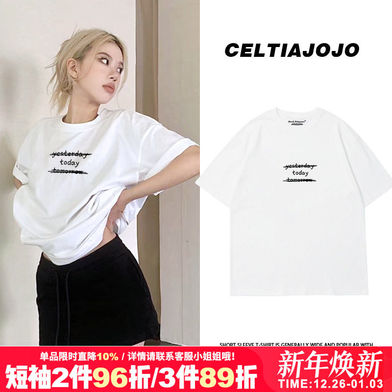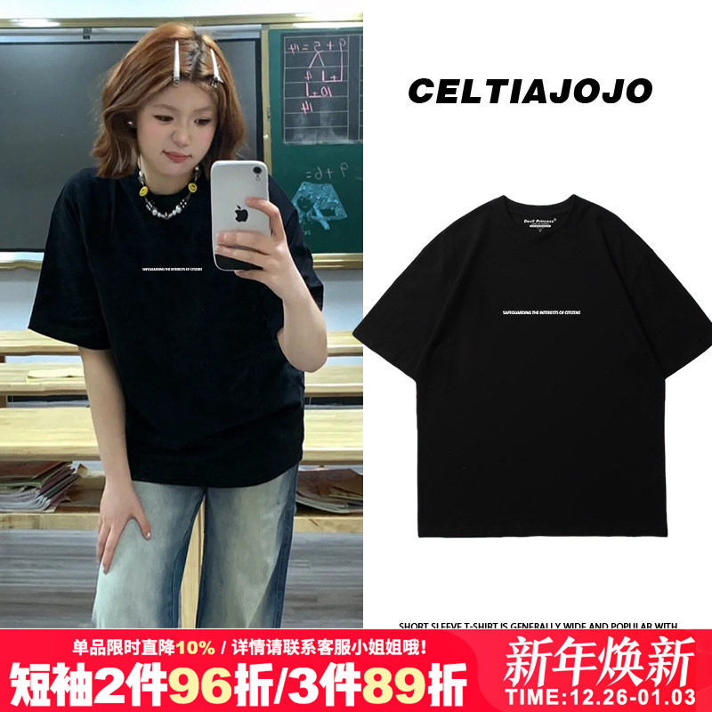 ins韩版宽松简约字母印花潮牌oversize大码bf风纯棉短袖t恤上衣夏