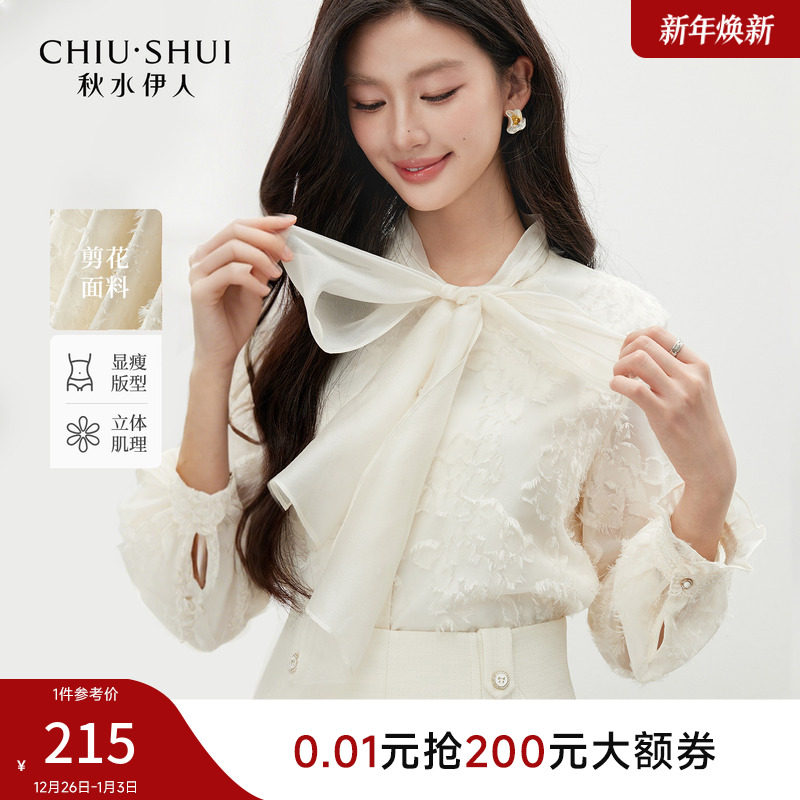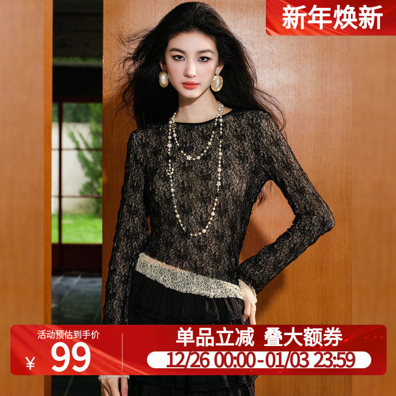 秋水伊人镂空袖设计蕾丝衫 2025秋冬新款女装优雅半透明气质上衣