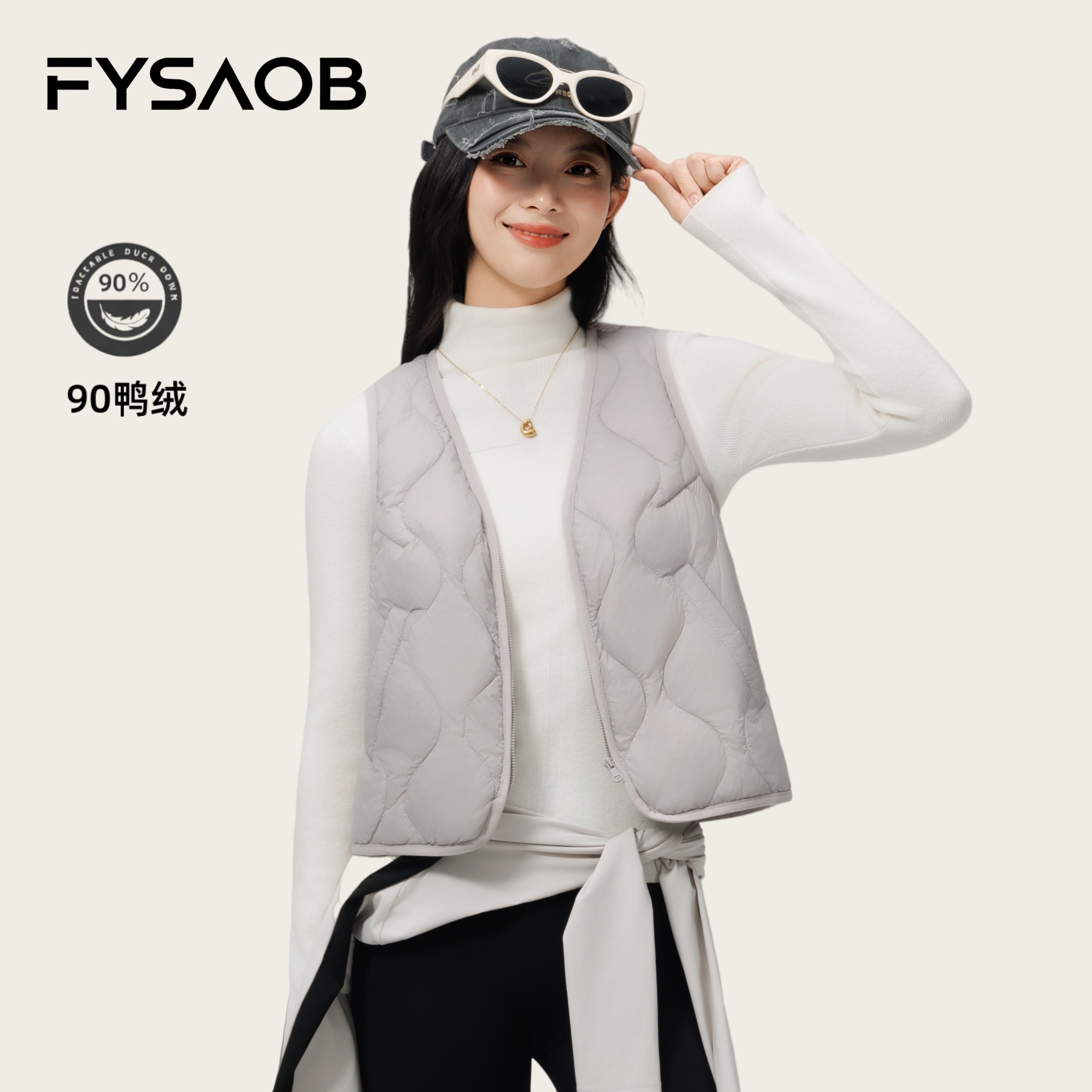 帆泊轻薄羽绒马甲女士秋冬新短款内穿V领休闲百搭保暖背心马夹潮