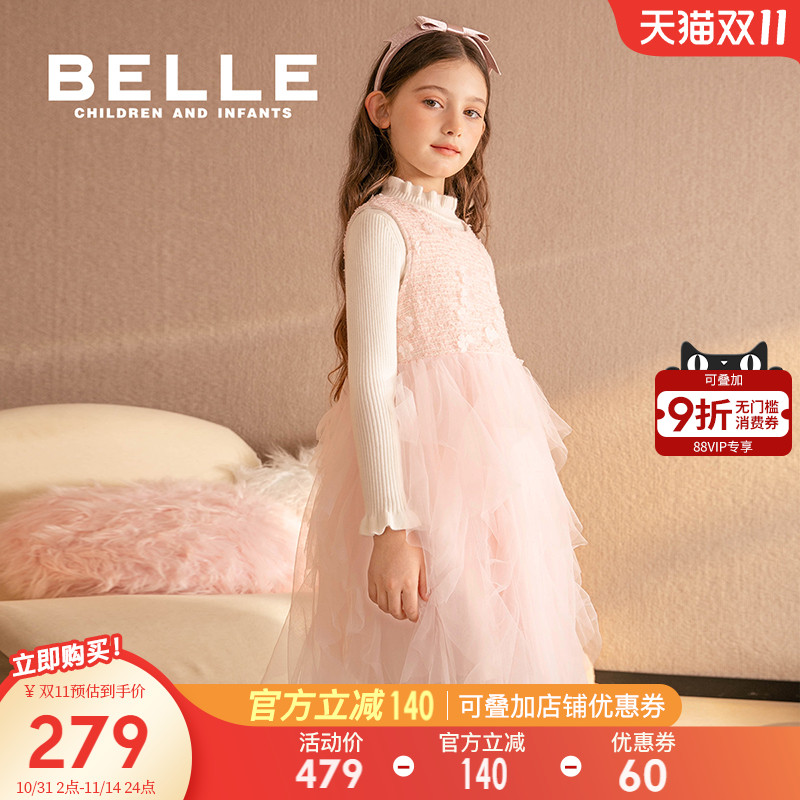 百丽童装女童小香风连衣裙套装2025秋冬新款小女孩儿童公主网纱裙