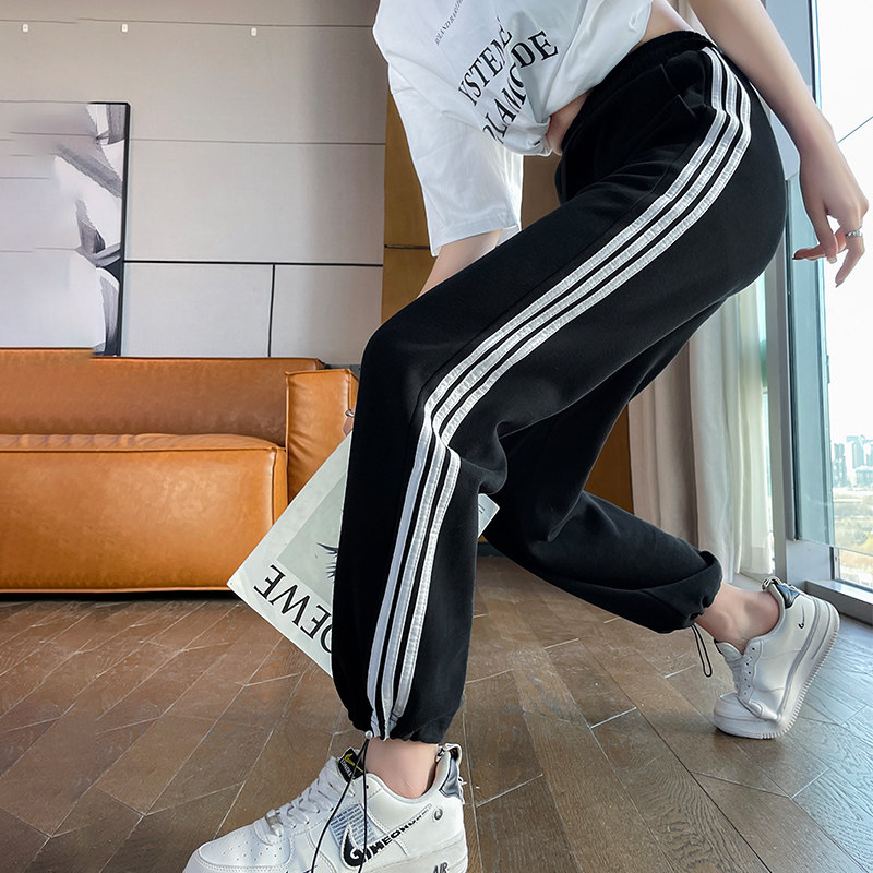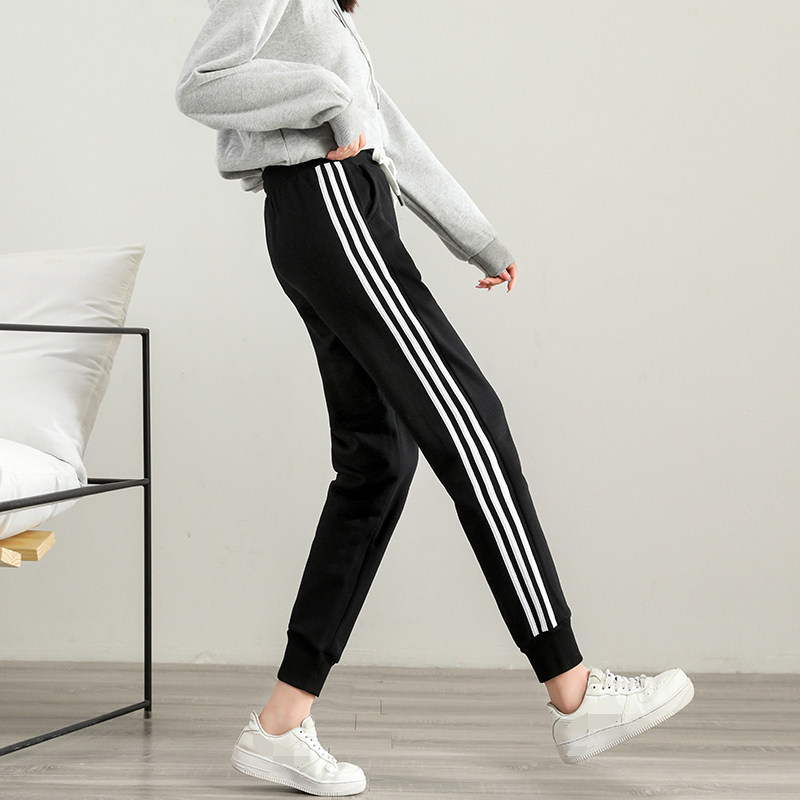 三道杠条纹卫裤女春秋新款跑步跳舞学生哈伦小个子束脚运动休闲裤