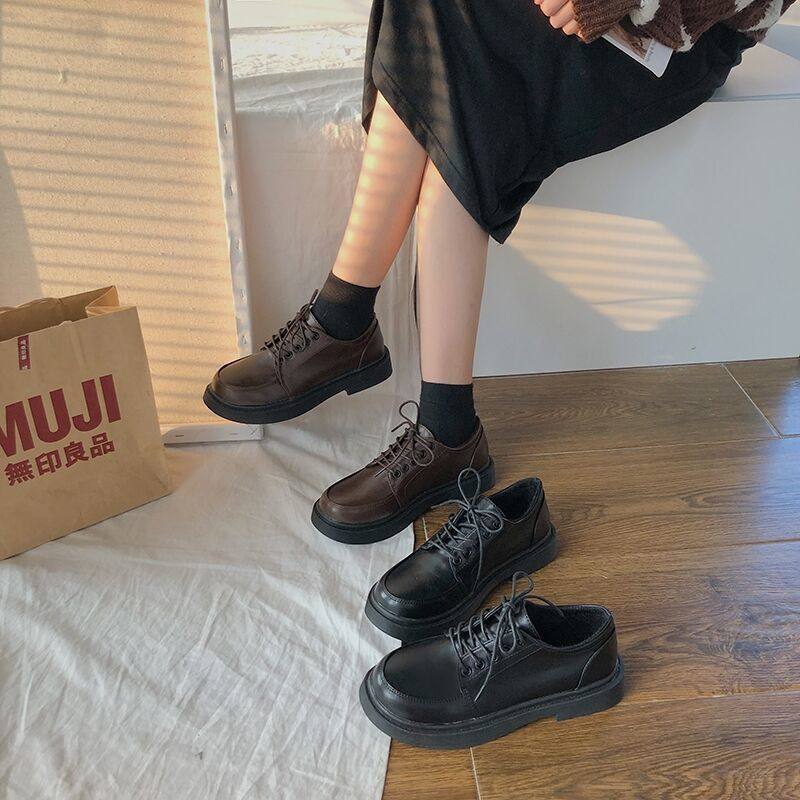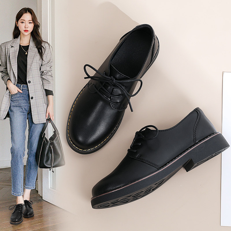 2025韩版百搭春季圆头系带复古小皮鞋女夏学生英伦平底学院风单鞋