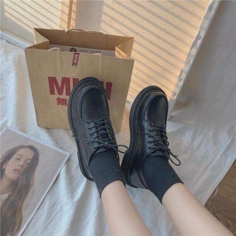 厚底百搭韩版修脚圆头女单鞋英伦复古学院牛津学生小皮鞋猪皮鞋垫