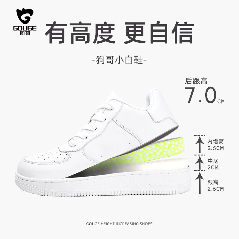 狗哥增高小白鞋小个子男女隐形内增高7cm舒适厚底板鞋2026超纤皮