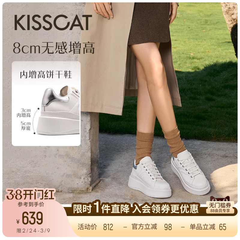 露思/田曦薇同款接吻猫[8cm内增高长腿鞋]休闲板鞋厚底松糕小白鞋
