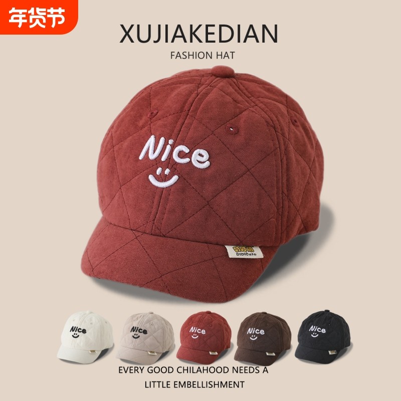 50-52可爱娃娃秋冬1-4岁宝宝户外防风灯芯绒帽儿童鸭舌棒球帽嘟啦