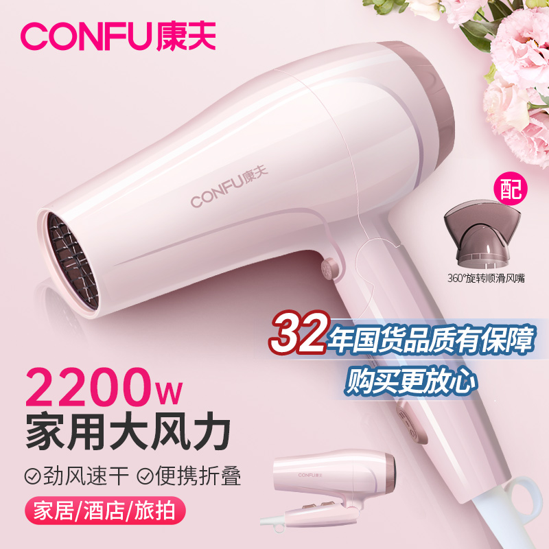 康夫吹风机家用可折叠大风力吹风筒学生宿舍大功率护发速干电吹风
