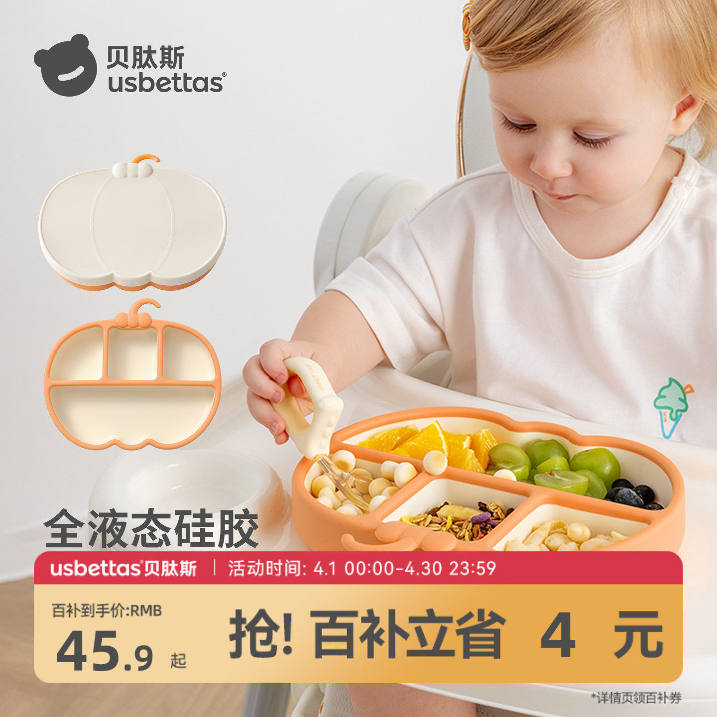 贝肽斯宝宝餐盘婴儿吸盘式自主进食硅胶辅食碗分格式吃饭儿童餐具