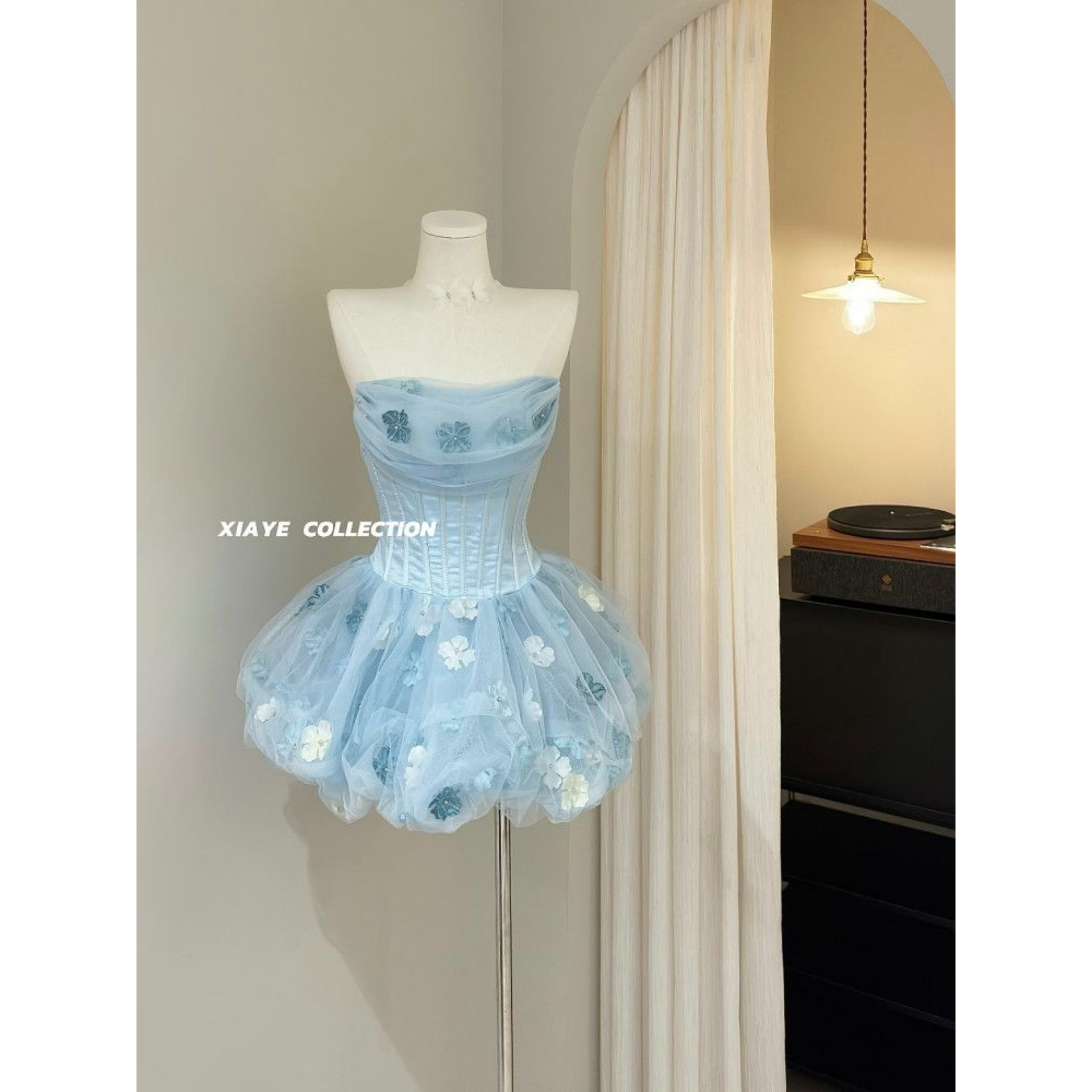 2026夏季新款法式少女小个子抹胸蛋糕短裙性感显瘦气质蓬蓬连衣裙