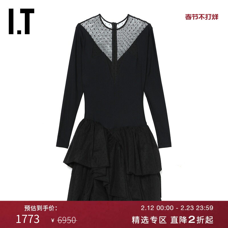 IT pushBUTTON女装蓬蓬连衣裙新品摩登性感透视蕾丝拼接40511WXJ