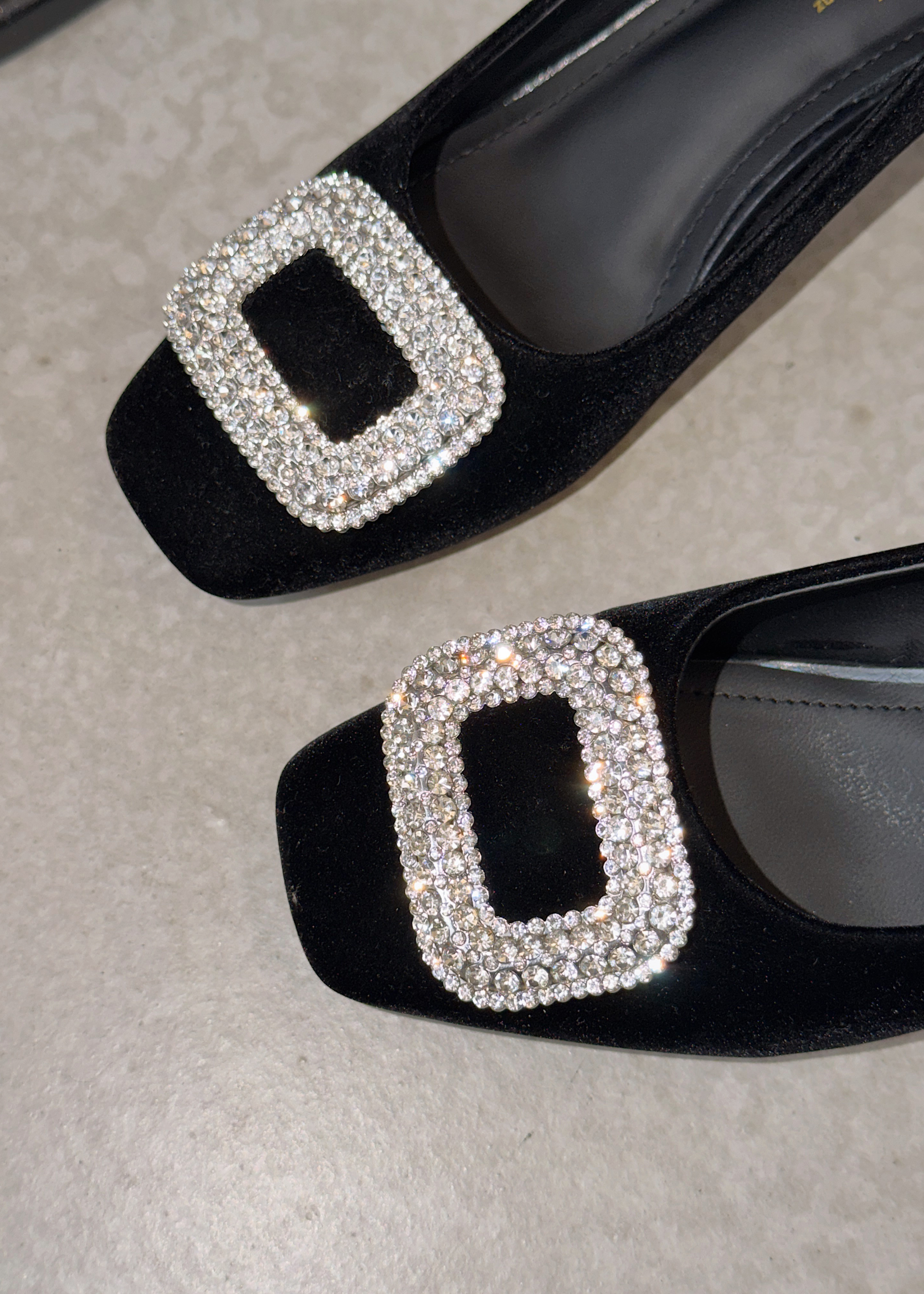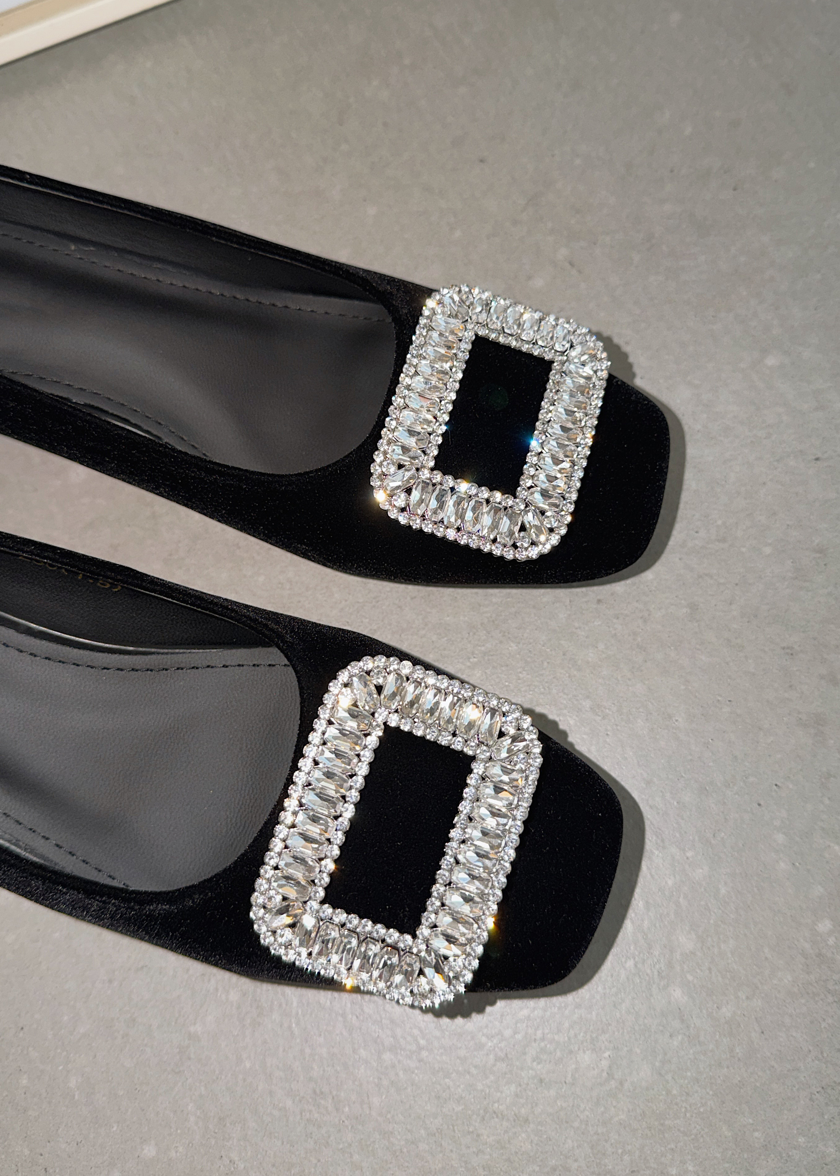 羊皮版~气质方头钻扣丝绒平底鞋女秋新款晚晚风通勤鞋内增高单鞋