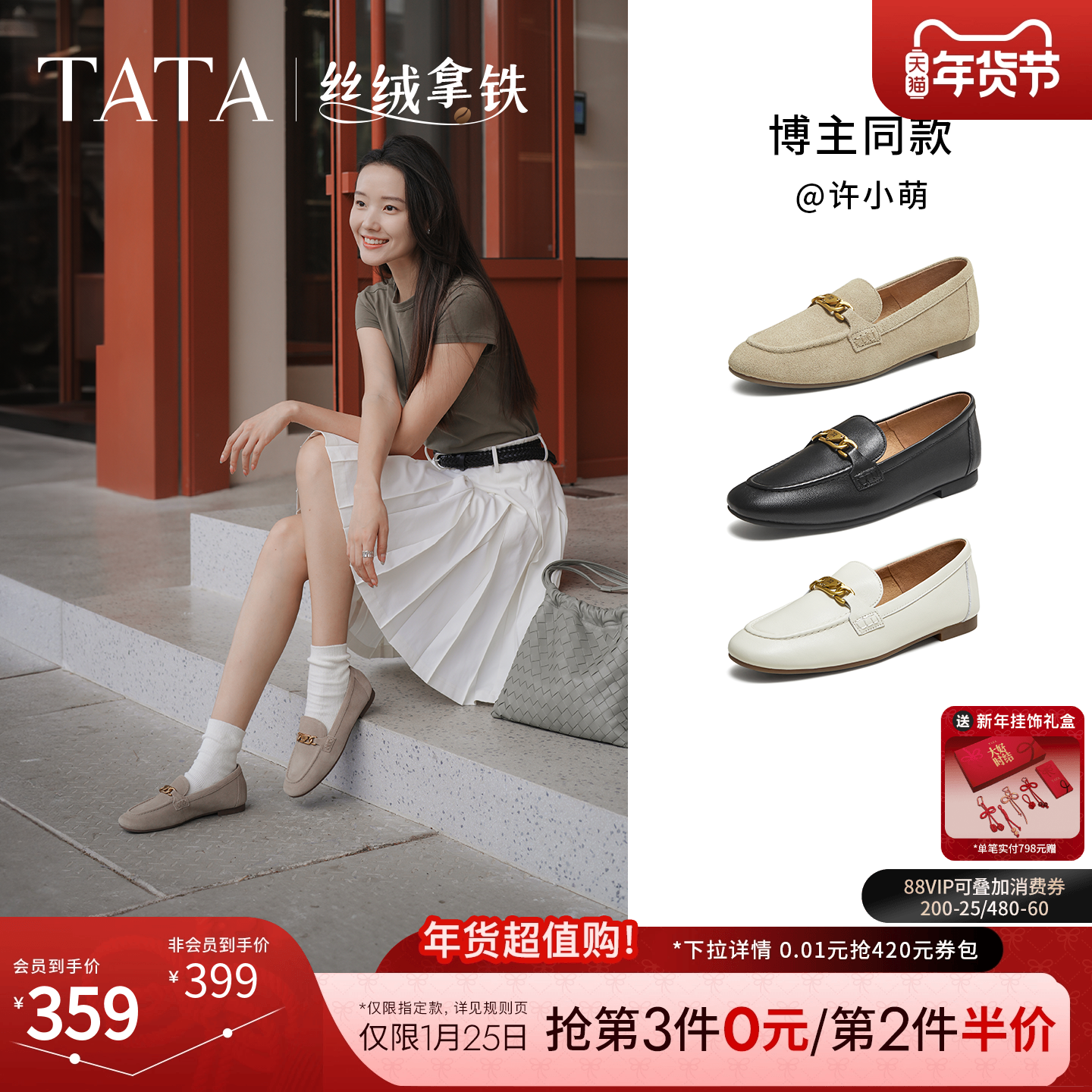 TATA他她女鞋丝绒拿铁冬款单鞋时尚休闲鞋羊皮乐福鞋子7QCC1CA5