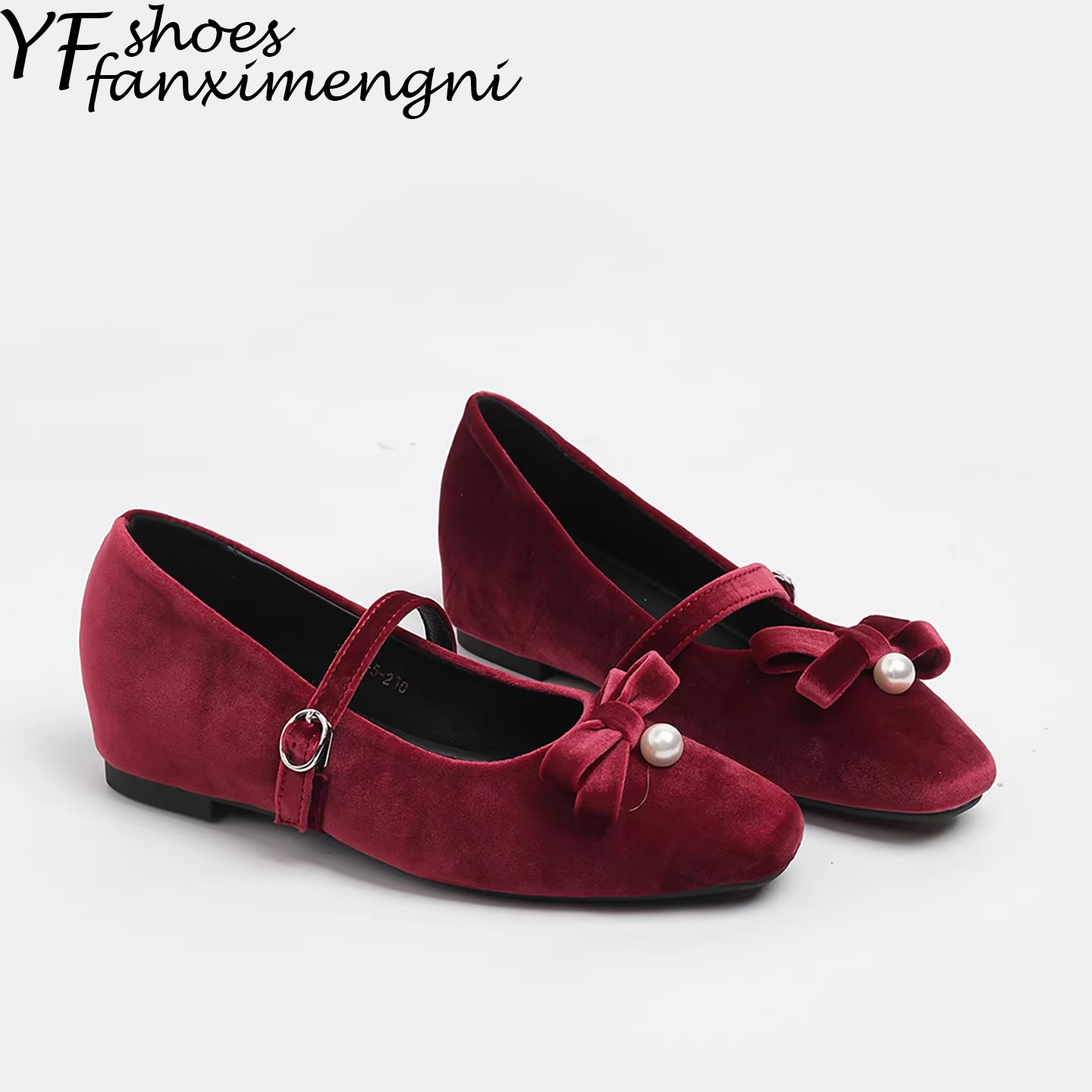 复古金丝绒方头红色浅口单鞋女2026新款一字带内增高法式玛丽珍鞋