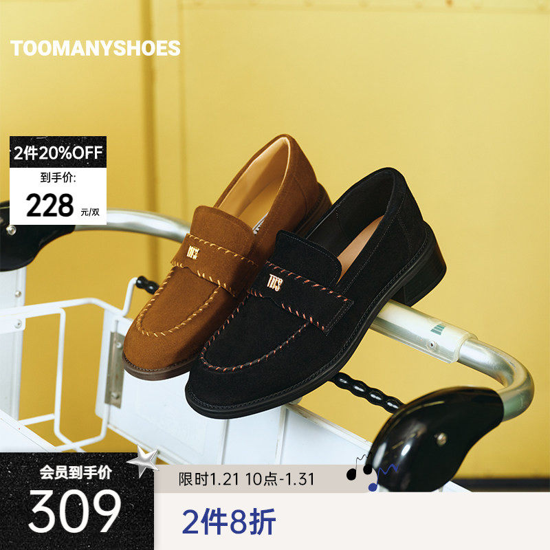 【2件8折】Toomanyshoes女鞋丝绒可可小皮鞋通勤厚底复古乐福鞋