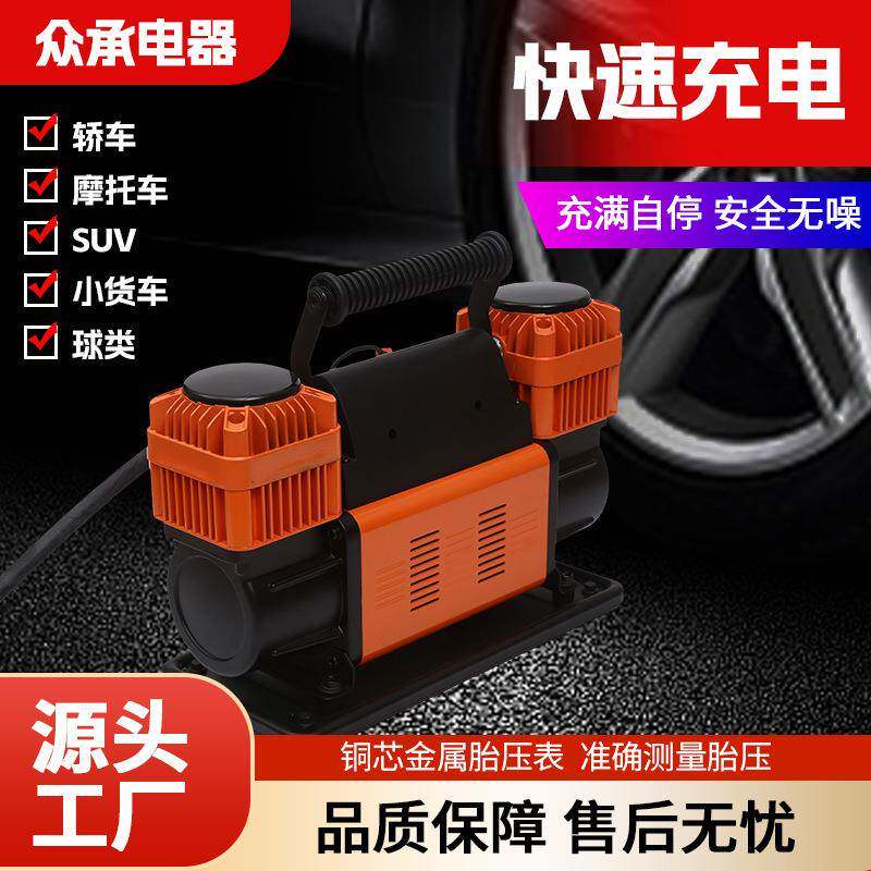 大功率车载充气泵双缸高压汽车打气泵家用两用12v小型轮胎打气筒