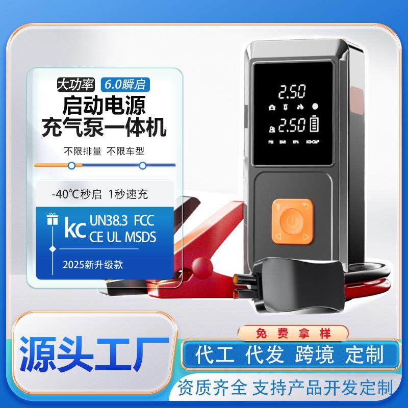 大功率车载充气泵搭电一体机打气强启搭电宝应急电源启动充气一体