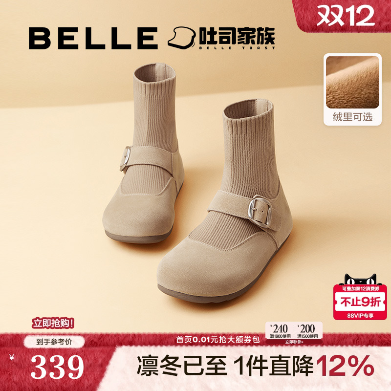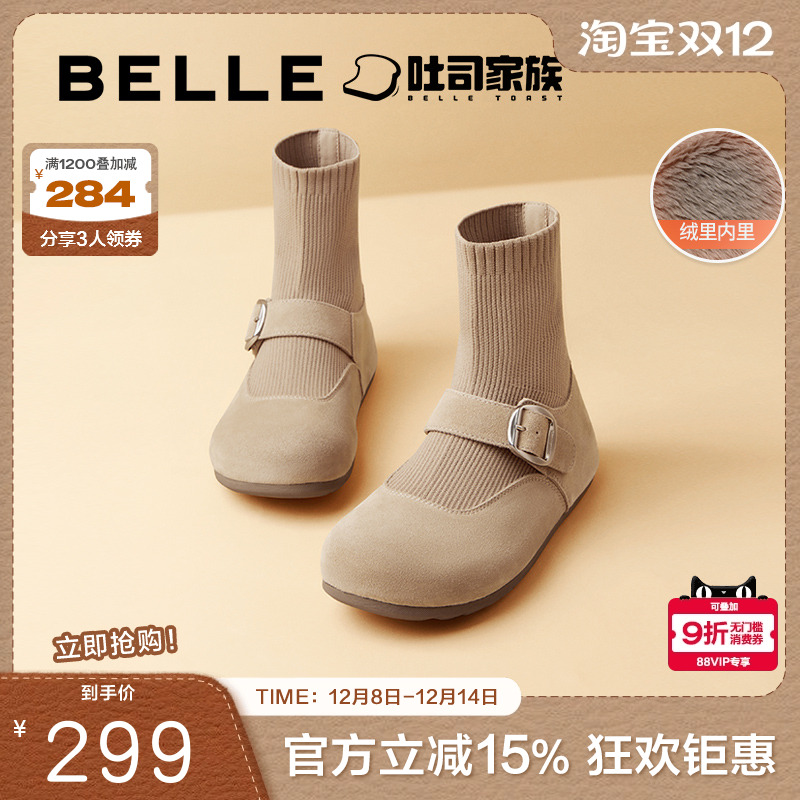 百丽吐司鞋半糖弹力袜靴女勃肯鞋子冬新加绒袜子鞋短靴D2B1DDD4