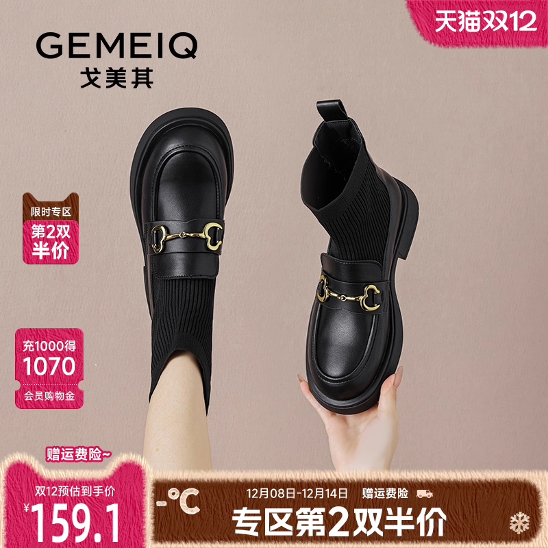 戈美其袜靴女2025春冬新款瘦瘦靴乐福鞋弹力袜子鞋显瘦英伦风短靴