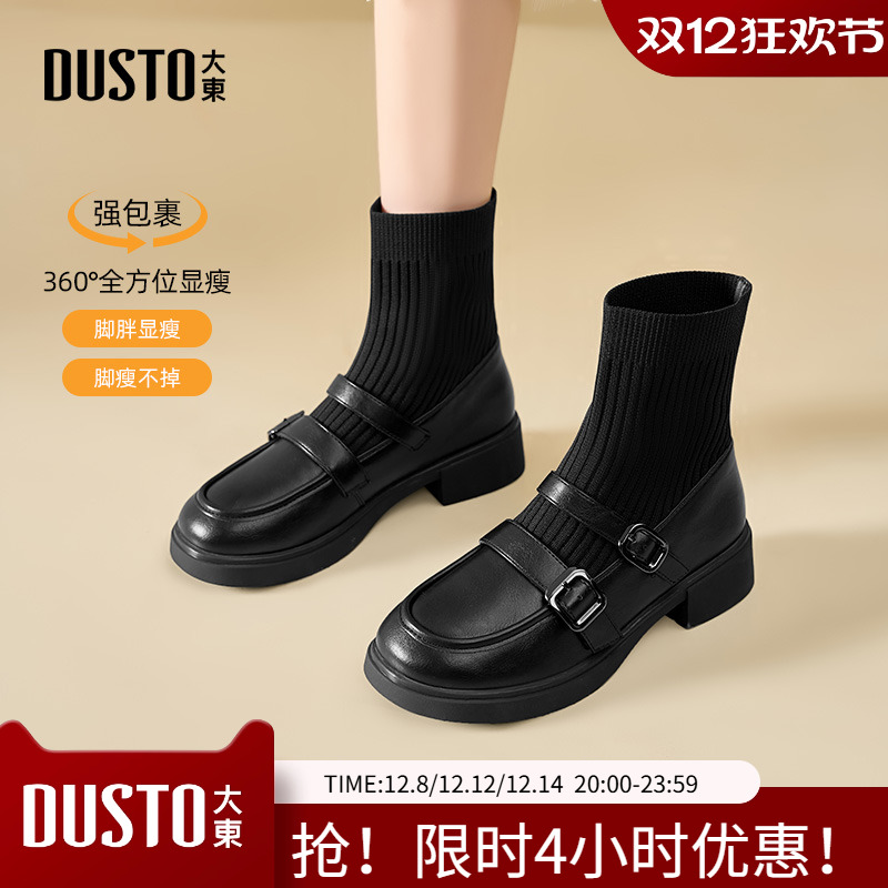 大东袜靴女2025新款秋冬加绒厚底瘦瘦靴短靴弹力袜子鞋连袜乐福鞋