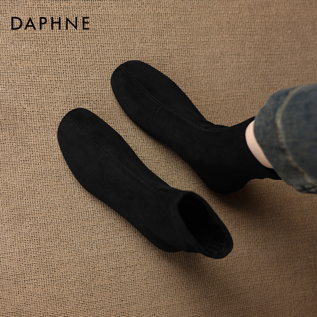 达芙妮黑色绒面瘦瘦小短靴2025新款女士女款秋冬季弹力袜靴女靴子