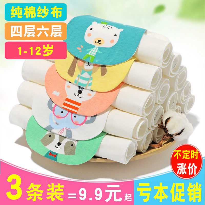 3条装男女宝宝吸汗巾6层4纱布纯棉幼儿园垫背巾儿童汗巾纱布1-8岁