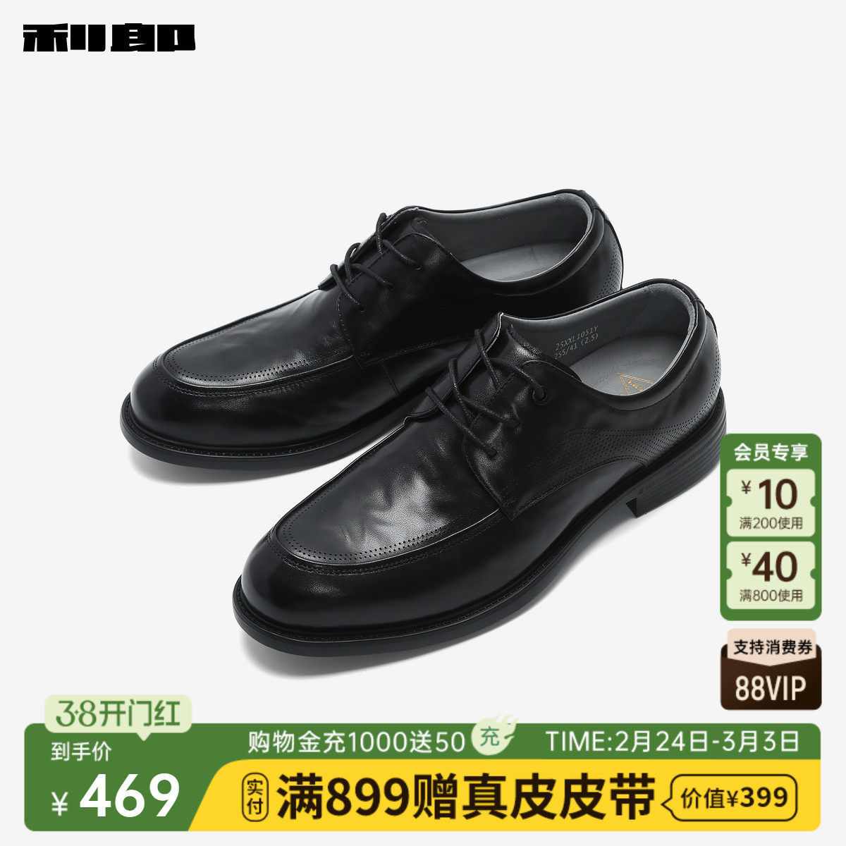 利郎官方头层牛皮革低帮正装鞋男2026夏季新款尖头系带防滑皮鞋男