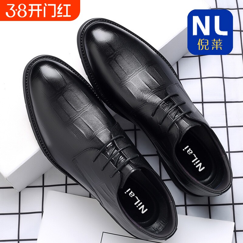 皮鞋男士商务正装真皮秋季透气英伦尖头新郎结婚鞋内增高舒适休闲