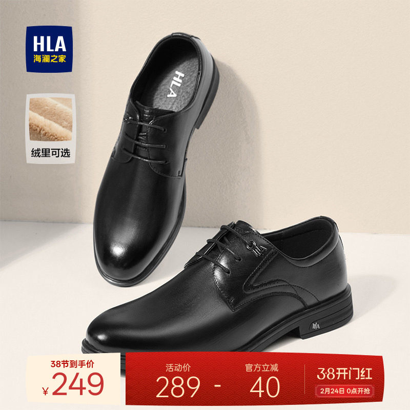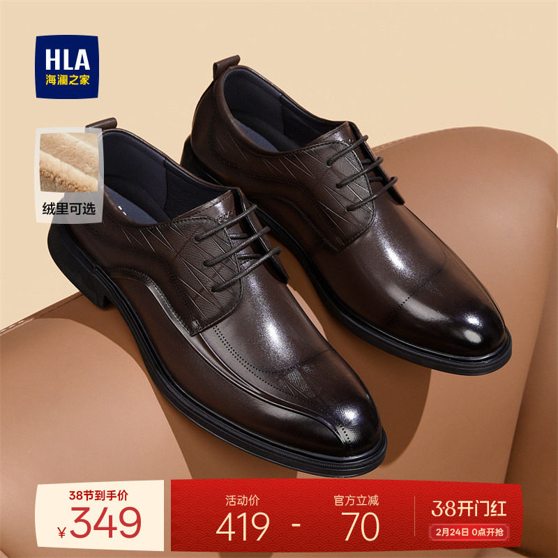 HLA/海澜之家男鞋新款冬季真皮正装尖头商务皮鞋加绒耐磨德比鞋男