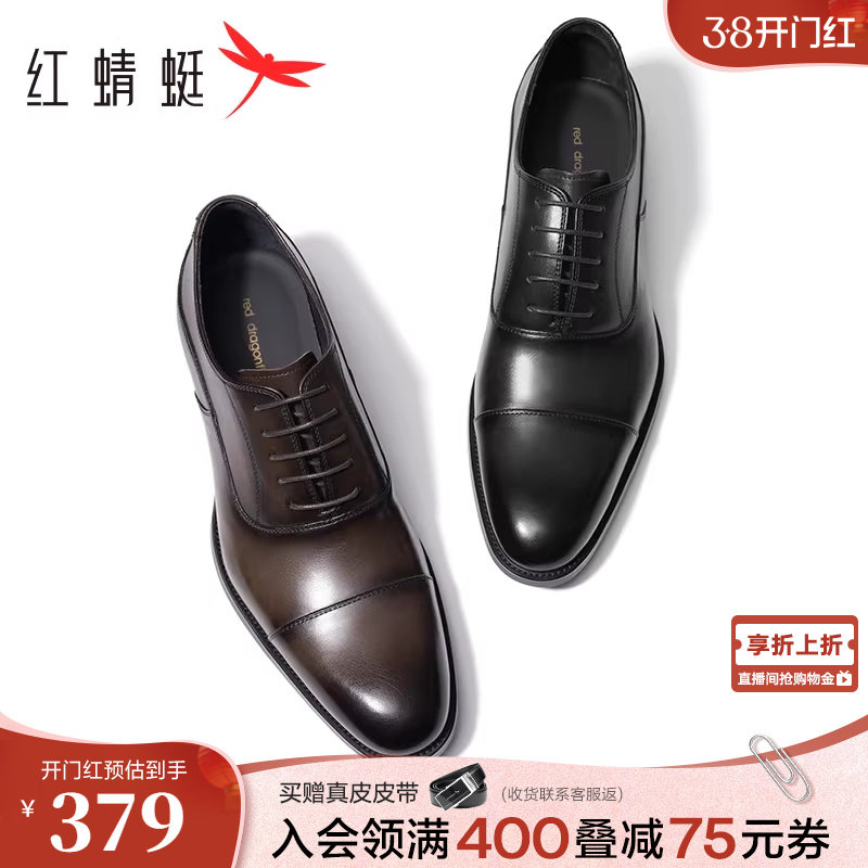 红蜻蜓男鞋春秋牛皮透气商务正装英伦德比鞋男士增高新郎尖头皮鞋