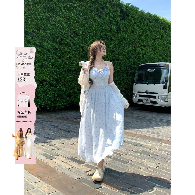 LaceMade 小红桃 法式少女感波点木耳边针织短款吊带连衣裙