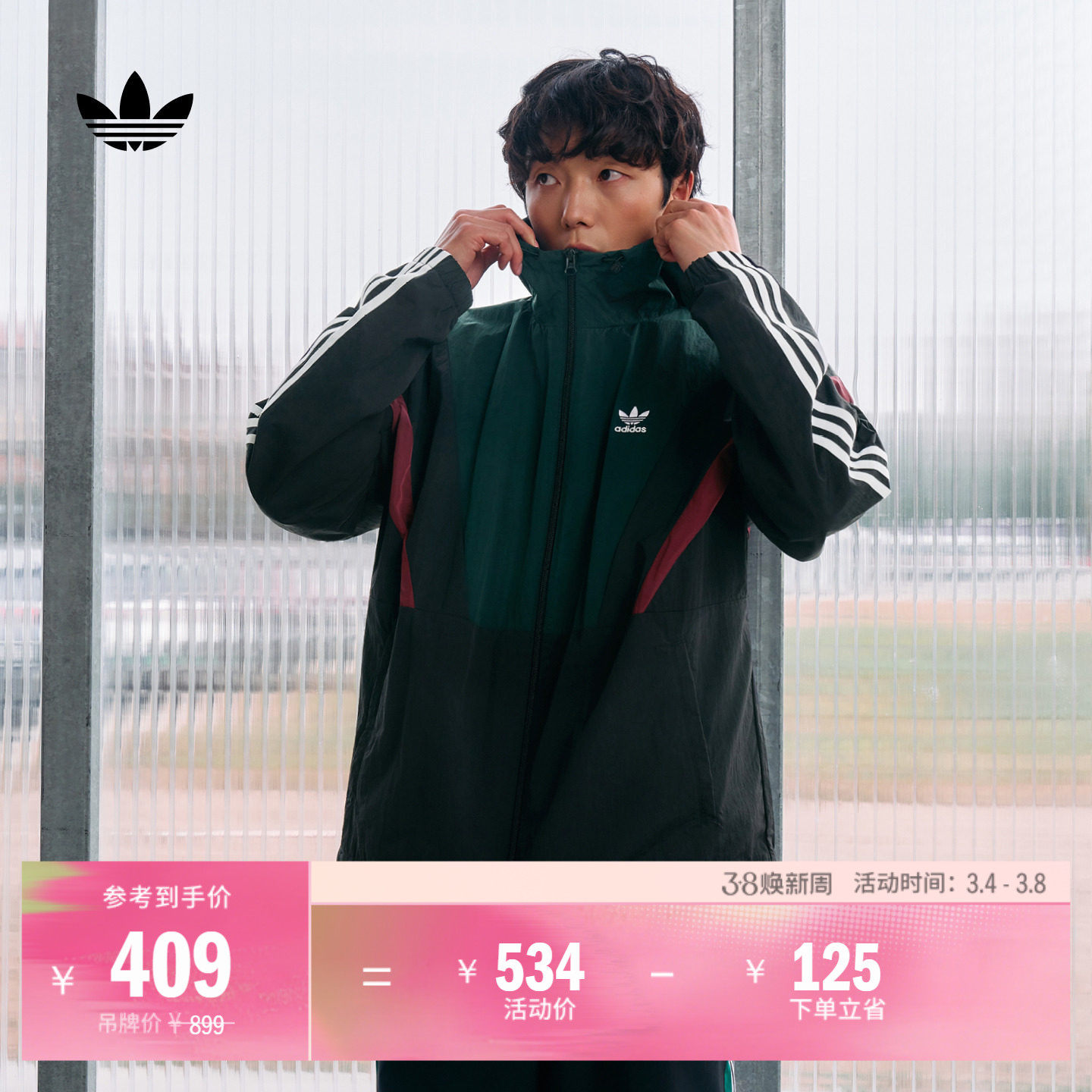 通勤百搭休闲运动连帽夹克外套男女新款adidas阿迪达斯三叶草