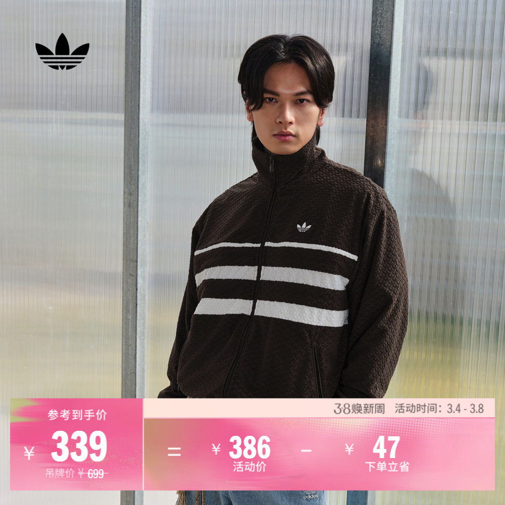 明星同款针织绒面休闲宽松夹克外套男女adidas阿迪达斯官方三叶草