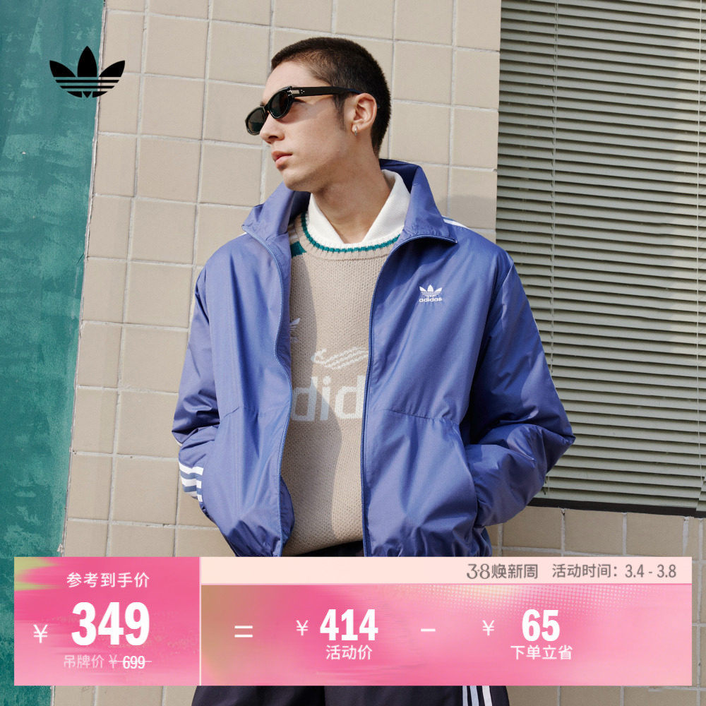 情侣款复古风梭织运动立领夹克外套男女春季adidas阿迪达斯三叶草
