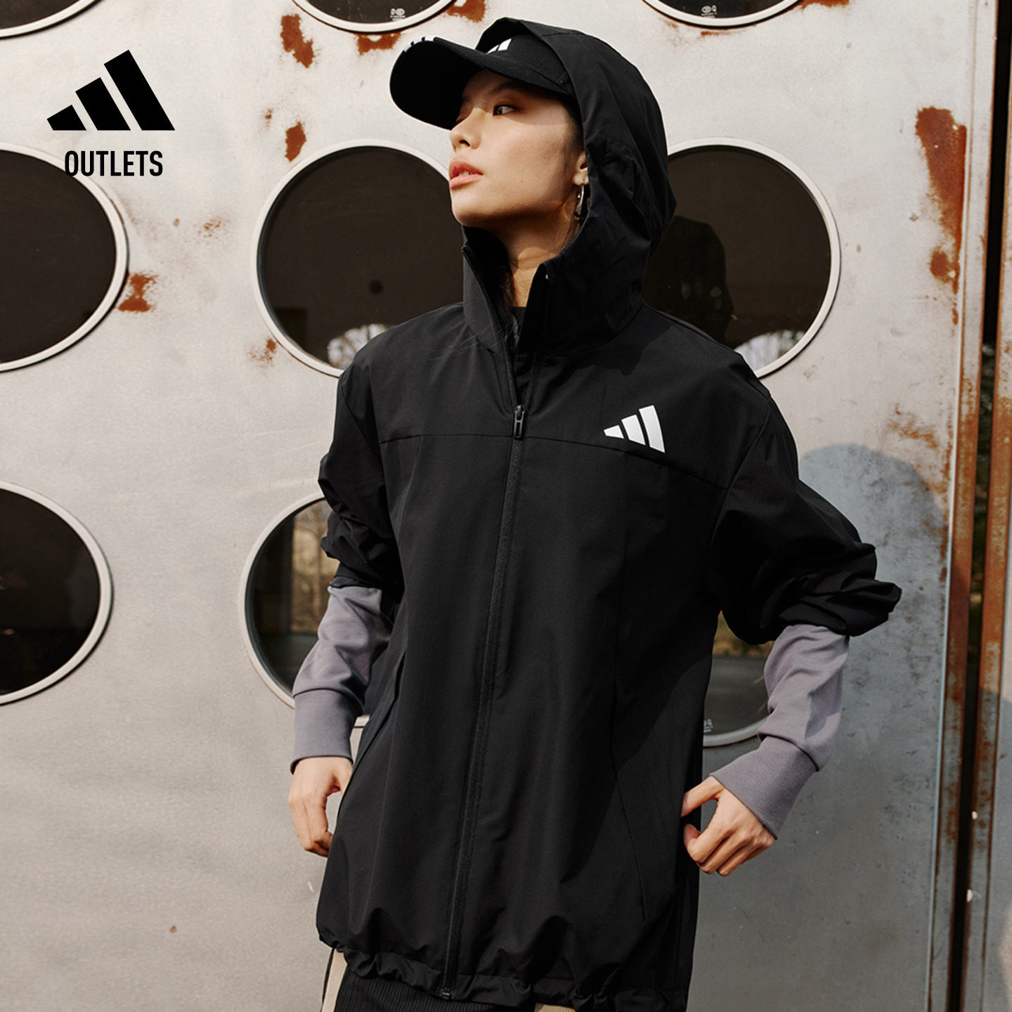 拒水梭织连帽夹克外套男女adidas阿迪达斯outlets轻运动
