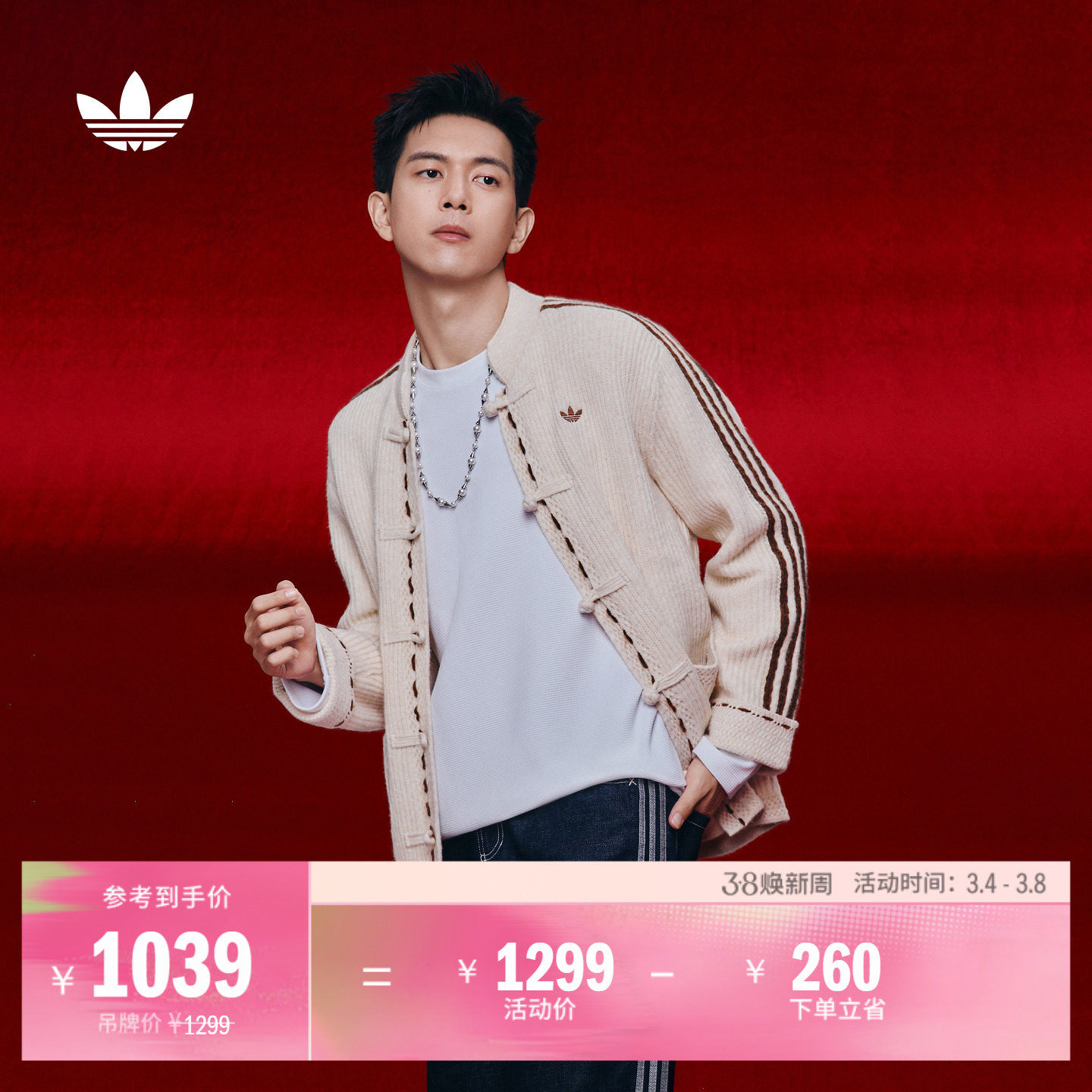 明星同款新中式针织开衫外套男女秋冬adidas阿迪达斯官方三叶草